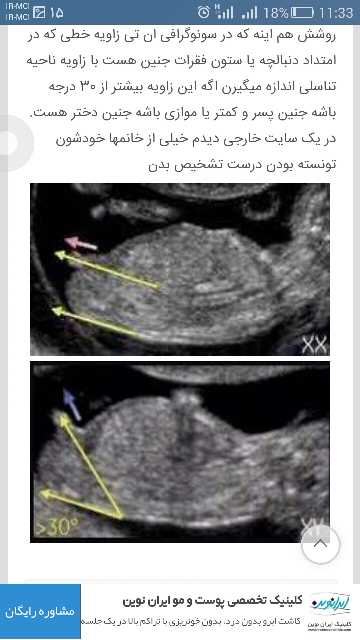 aliasgharam مدیر استارتر عضویت: 1396/10/13 تعداد پست: 40 سلام دوستان کسی هست ک جنسیت و از رو سونوی ان تی بگه