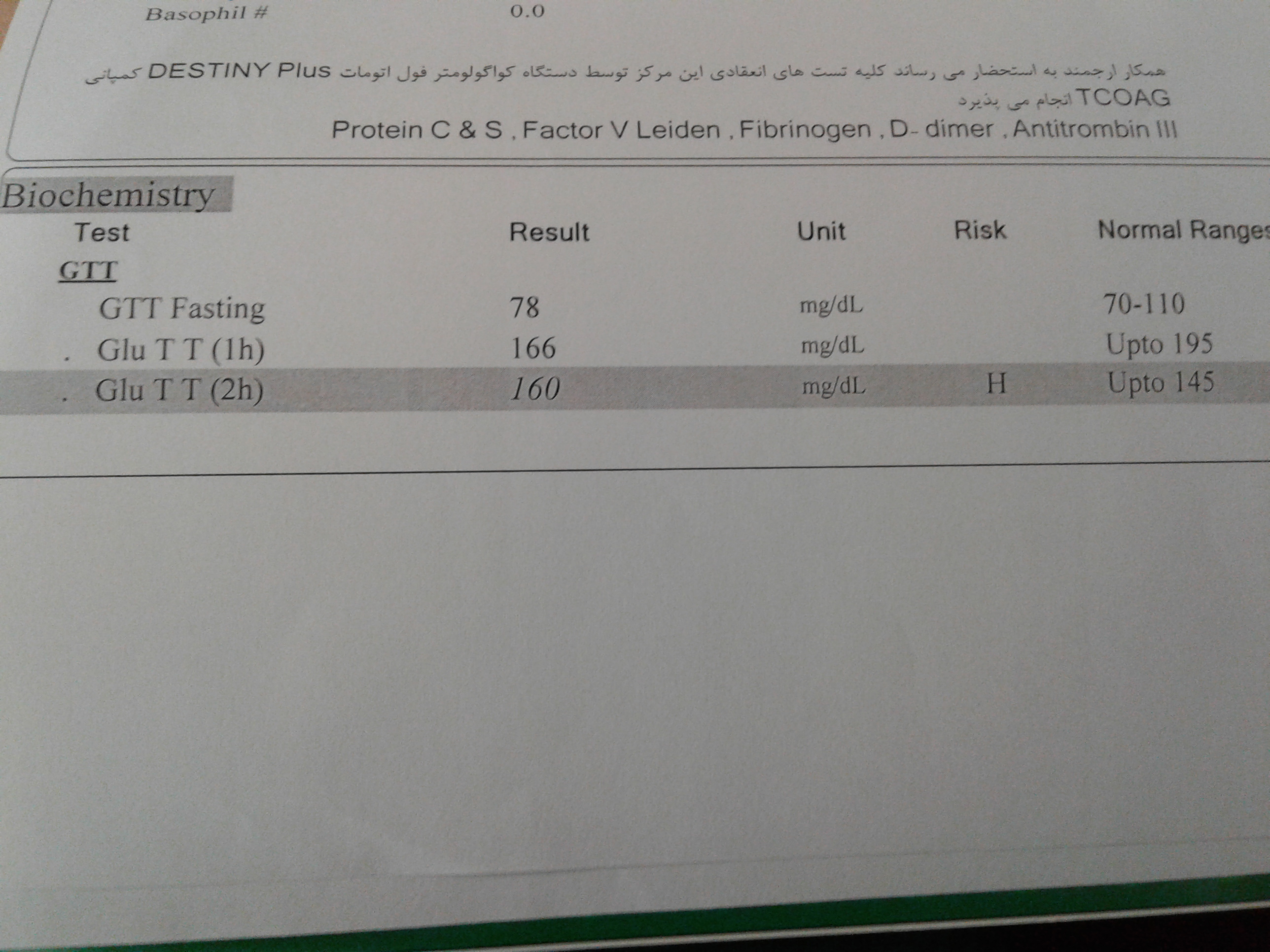 اگر دو نمونه خون ، برابر یا بیش از نتایج فوق باشد ، فرد مبتلا به دیابت بارداری است .