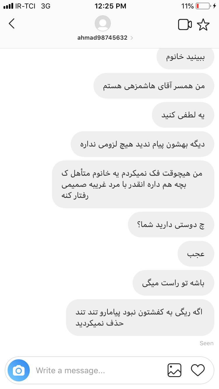 امروزه یکی به اسم سوگولی تو دایرکت بهش پی ام داده داده بود :ارایشگرای بی مصرف