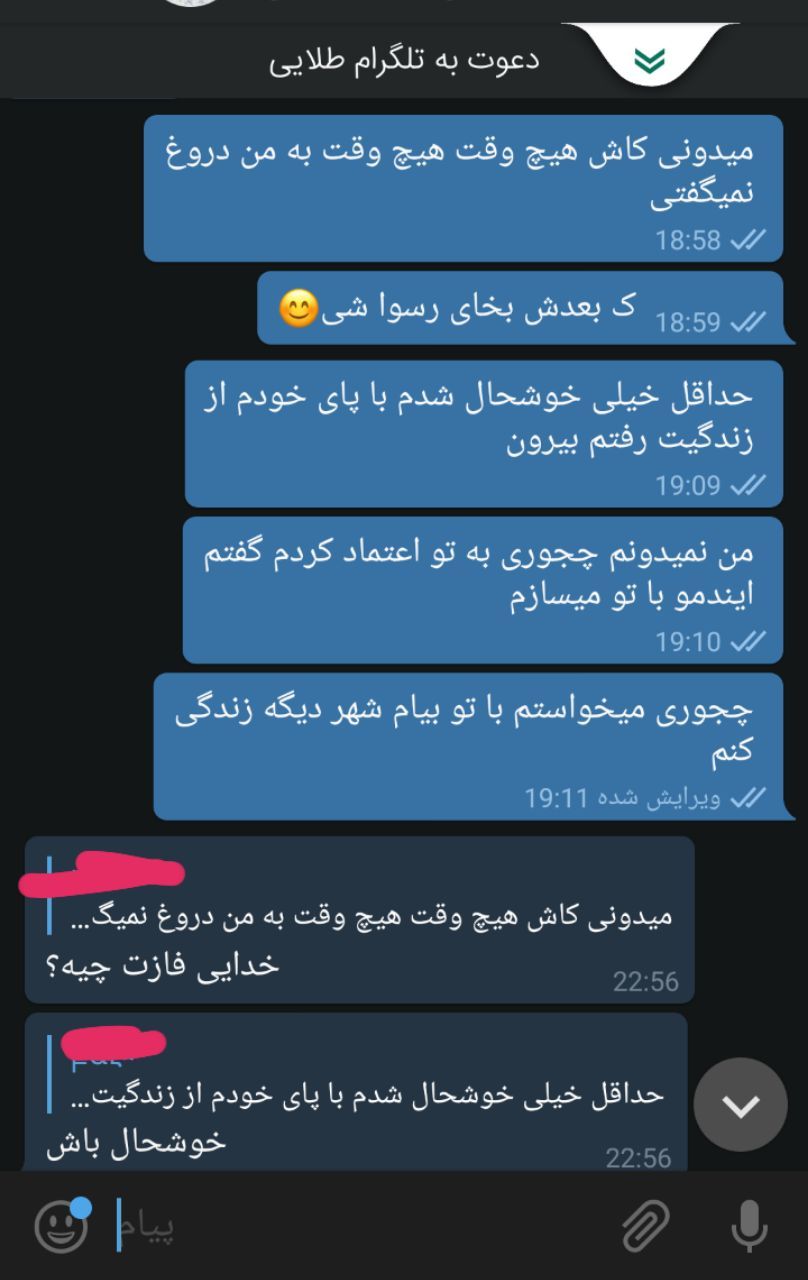 fawtii مدیر استارتر عضویت: 1397/06/20 تعداد پست: 2020 گفتم بزار ببخشمش من حتما اشتباه کردم بعد از چند وقت گفتم بزار امتحانش کنم گفتم میخام برم از زندگیت ح ... امشب فهمیدم ک اره قبلا با کسای دیگه ای بوده در صورتی ک میگفت تو عشق اول من بودی بخاطرش بهترین خاتسگارامو رد کردم اگر برای ابد هوای دیدن طُ نیفتد از سر من چه کنم؟؟🖤