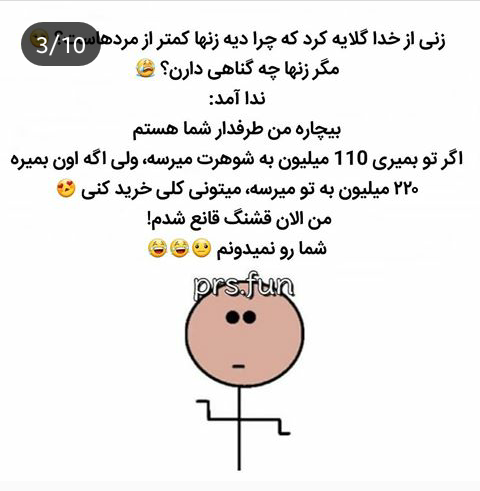 خدایا نه بهم پول دادی😒 ن اخلاق دادی😒 ن جذابیت دادی😒 ن شوهر با شعور دادی😒 تو ایرانم ب دنیا اومدم. خداوکیلی بگم خدایا شکرت! خودت خندت نمیگیره😢😆 نمیگی الناز بسه😂😂انقد تیکه ننداز😒😂 هر کی اذیتم میکنه و دلمو میشکنه ؛تو بجاش روز ب روز خوشبخت ترش میکنی😡😓 اونوقت کافیه یک نفر یک آه کوچیک از من بکشه میزنی کجم میکنی😢 خدایا چرا ب پرونده های من رسیدگی نمیکنی نوکرتم😥😢