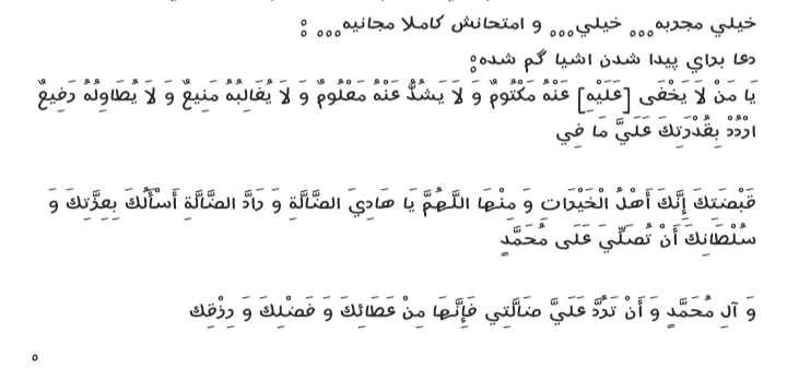 یه دعا ازامام رضاهست پیداکن بخون فورا پیدامیشه هزاران باربرام اتفاق افتاده فقط با کمک اون دعاپیداکردم