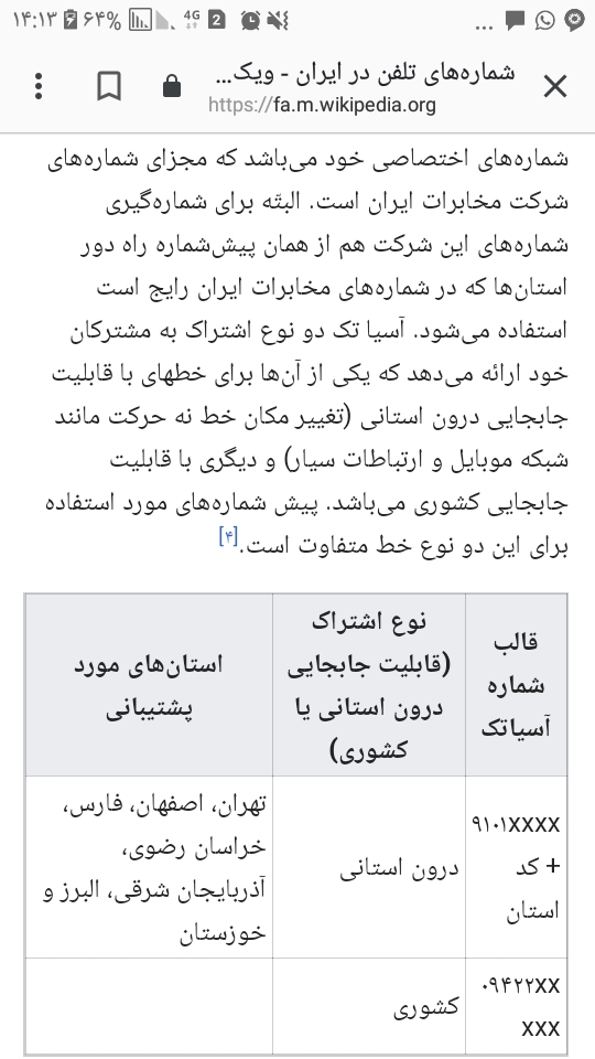 شماره‌‌ای هست که در اختیار شرکتهای ارائه‌دهنده خدمات مخابراتیست.