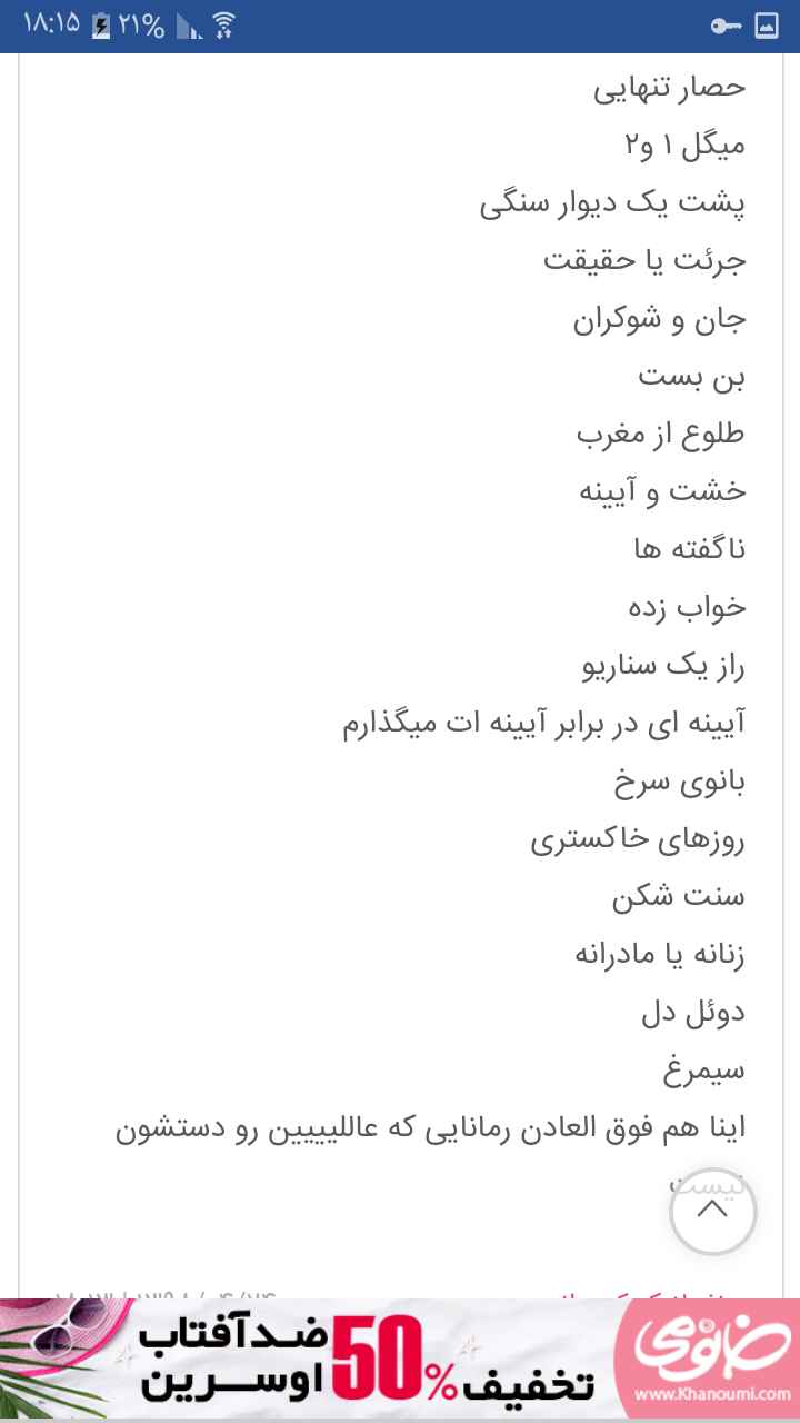 اینا رمانای عالی از نویسنده هاییه که قلم توانا و روان دارن همشونو خوندم به نظرم اینا جزء بهترینا بودن قبلن اسکرین گرفته بودم واس یه خانم دیگه هم فرستام،شاید به دردت بخوره