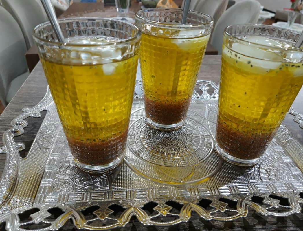 دو لیوان برنج.چهار لیوان شیر نصف استکان گلاب سنگین هل و زعفرون دم شده کره یک پنجاه گرمی شکر 2لیوان س ...