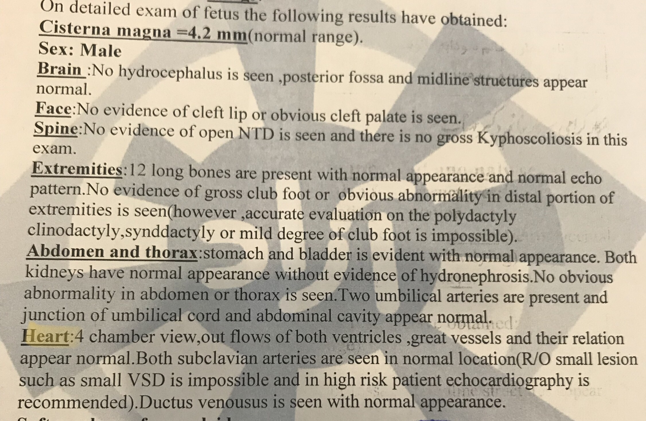 بچه ها قسمت heart که با زرد هایلایت کردم رو بخونید، نوشته ۴حفره مشاهده شد ، vsd مشاهده شد ، اینا یعنی چی؟؟؟ 😭 کسی میدونه ؟؟