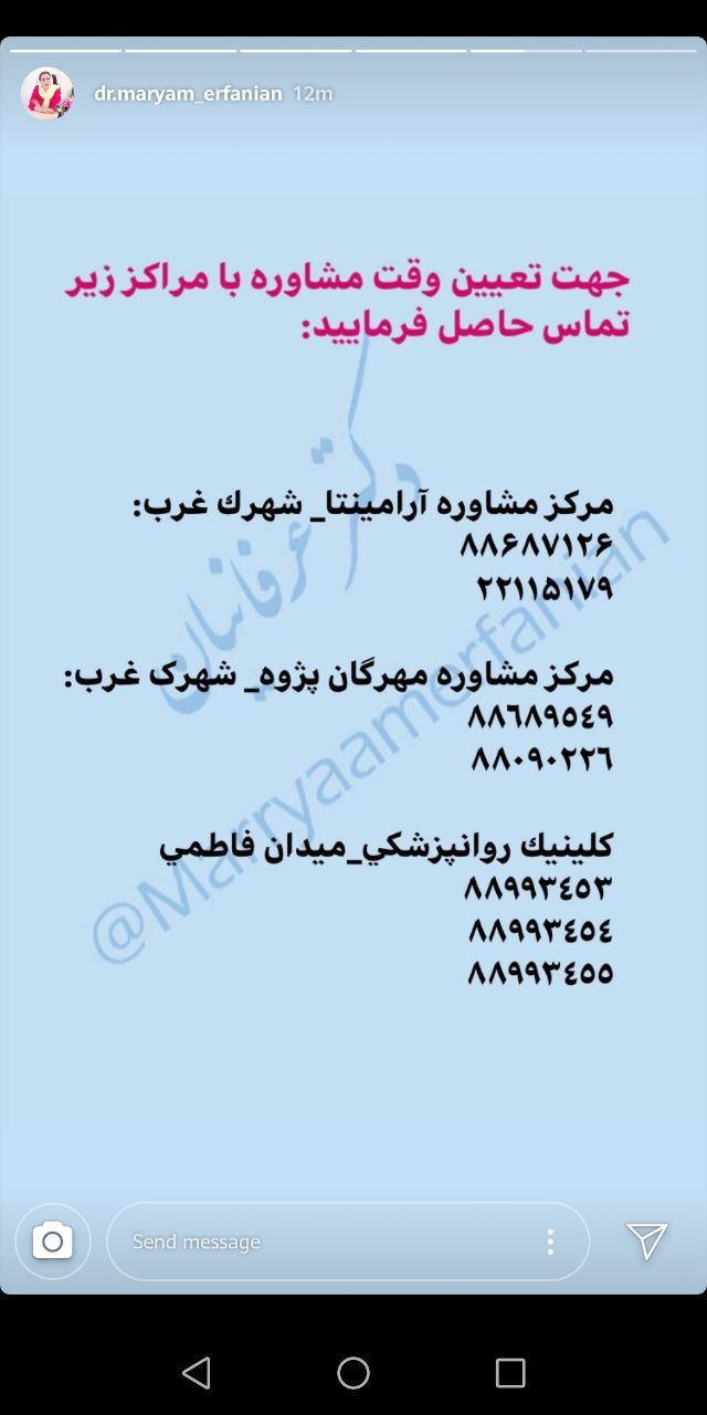 leyla_r عضویت: 1398/03/08 تعداد پست: 3090 اگه تهران هستین برین پیش مریم عرفانیان .جلسه یک ساعته 120تومن.کارشونم عالیه مطبش کجاس پیر شدم پیر تو ای جوونی!
