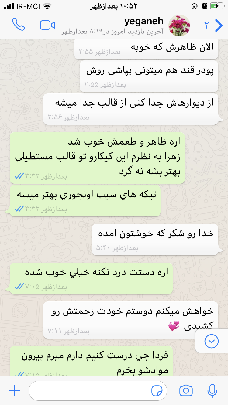 این روزا چیزی ک داره بهمون میرسه همهههه خبرای بده😶🧡... با خودم فک کردم بیایم اینجا از چتای زیبا و ارامش بخشی ک هر کدوممون داشتیم برای هم دیگه به اشتراک بذاریم و این حس خوبو به همدیگه منتقل کنیم... این چت میتونه با مادر، خواهر، عشق،... باشه🥰😍❤️❤️❤️