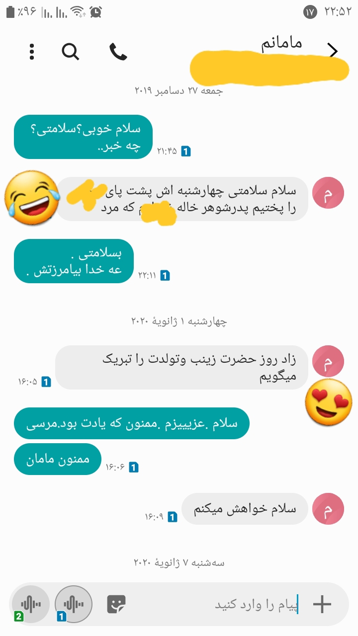 این روزا چیزی ک داره بهمون میرسه همهههه خبرای بده😶🧡... با خودم فک کردم بیایم اینجا از چتای زیبا و ارامش بخشی ک هر کدوممون داشتیم برای هم دیگه به اشتراک بذاریم و این حس خوبو به همدیگه منتقل کنیم... این چت میتونه با مادر، خواهر، عشق،... باشه🥰😍❤️❤️❤️
