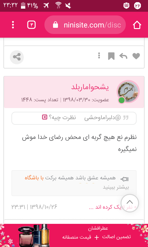 اینکه دوست داشتنیم تقصیر من نیست خوش شانسیه توئه 😎 یک جذاب مغرور آزاد، از اونا که تیپهای سنگین و خاصی میزنن 👔ادکلن خاص،سوار ماشین مشکیشون میشن و ساعت 1 شب به بعد تنها تو خیابونا رانندگی میکنن 🚗 در حالی که یه آهنگ خاصو 100 بار گوش میکنن، همونایی که تنها کافه و رستوران میرن... شبا تنهایی قدم می زنن، از دورکه نگاشون میکنی ابروهاشون گره خورده تو هم... همش فکر میکنن، ولی وقتی نزدیک میری و باهاشون صحبت میکنی با نگاه و آرامش خاصی باهات حرف میزنن ! ازاونا که بهترین آدما برا درد و دلن، همونایی که راجبه همه چیز اطلاعات دارن و نگفته میفهمن، از اون جذابایی که خیلی سخت اعتماد میکنن ! اگه بهشون دروغ بگی ، سعی نمیکنن ثابت کنن و مچ بگیرن، بلکه...یه لبخند کوچیک با چشای خمار میزنن و آروم پا میشن و میرن...