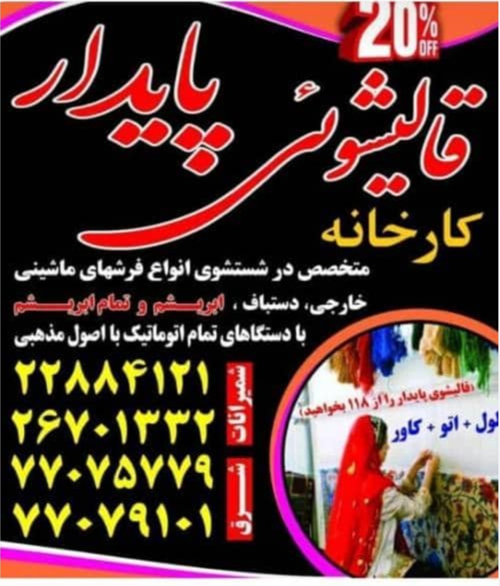 قالیشویی زعفرانیه رو از دست ندید اینم شمارش میزارم کسی خواس ۲۲۶۰۵۰۳۷