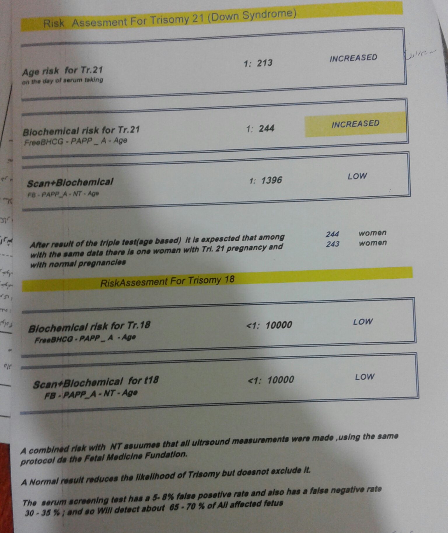 غربالگري دومم ك١٦هفته ازمايش دادم ٢هفته طول كشيد جوابش  ديگه ١٨هفته بودم ريسكشم ١ب ١٤بود دكترم گفت أمينو انجام بده جوابشم فوري تا ٤روزمياد ك خداي نكرده مشكلي داشته تَو سن قانوني بارداري سقط كنم ولي خداروشكر بعد ٤روز زنگ زدن بچم سالم بود فقط استرسش از بين بردم ٣كيلو وزنم كم شد