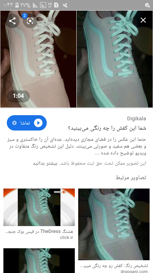 ن همه طوسی ابی میبینن. ولی رنگ اصلیه کفش صورتی با بند سفیده عکسشو هرکار میکنم فرستاده نمیشه صبح م ...