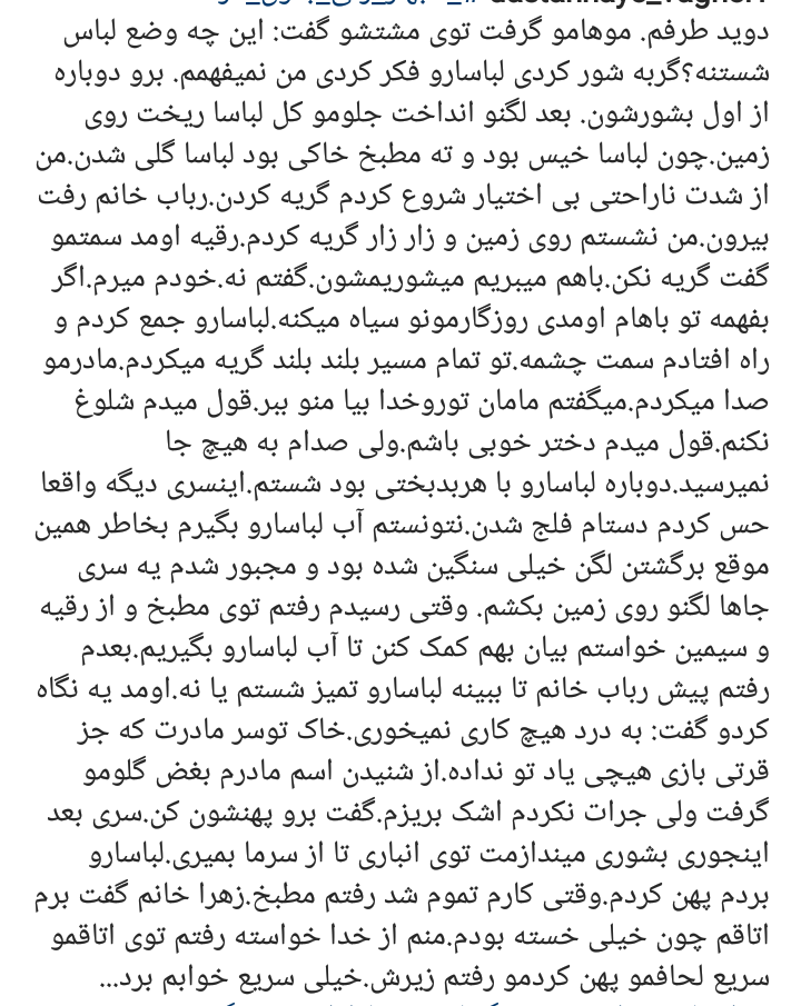 منم کار دارم وقتم خالی نیست که 90 قسمتو تو سه ساعت بزارم صبر کن پیجشون باز بشه برو بخون دیگه چرا منو می‌کشی انگار وظیفمه
