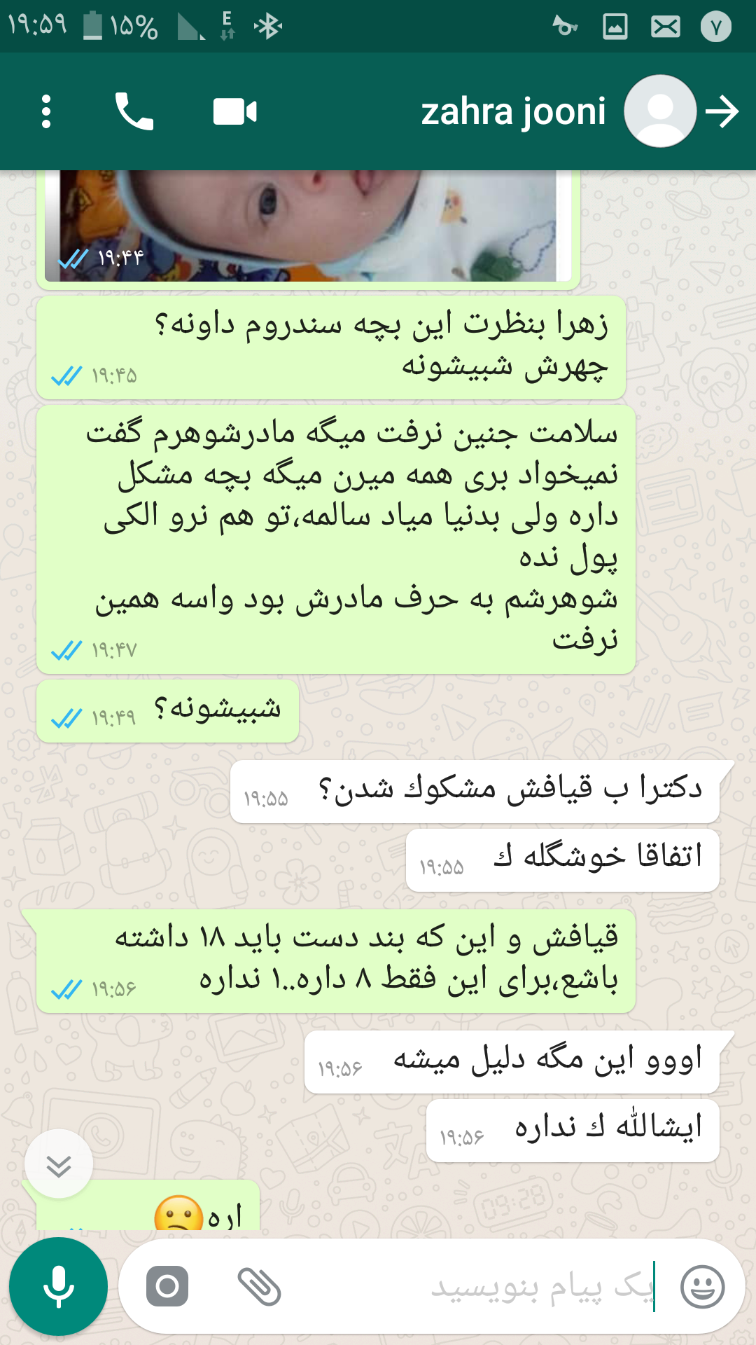 سلام بچم 50روزشع وقتی به دنیا اومدچشماش کمی به طرف بالابود که البته الان بهتره و کف دست چپش یه8داره و1نداره بخاطرهمین احتمال سندروم داون دادن بریمش ازمایشگاه8اسفند جوابش میاد دعا کنید منفی باشه ایشالله