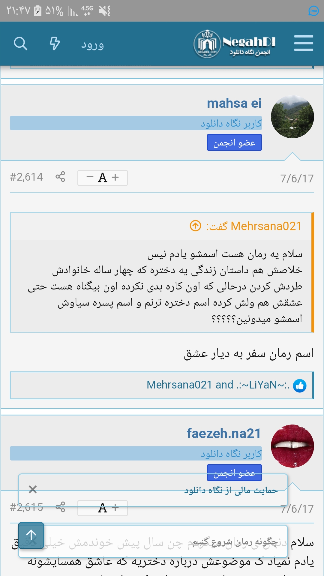 یه رمانی بود خیلی قشنگ بود تو گوشیم داشتم مثه برنامه بود نصب میشد  اسم شخصیت اصلی هم ترنم بود.. ...