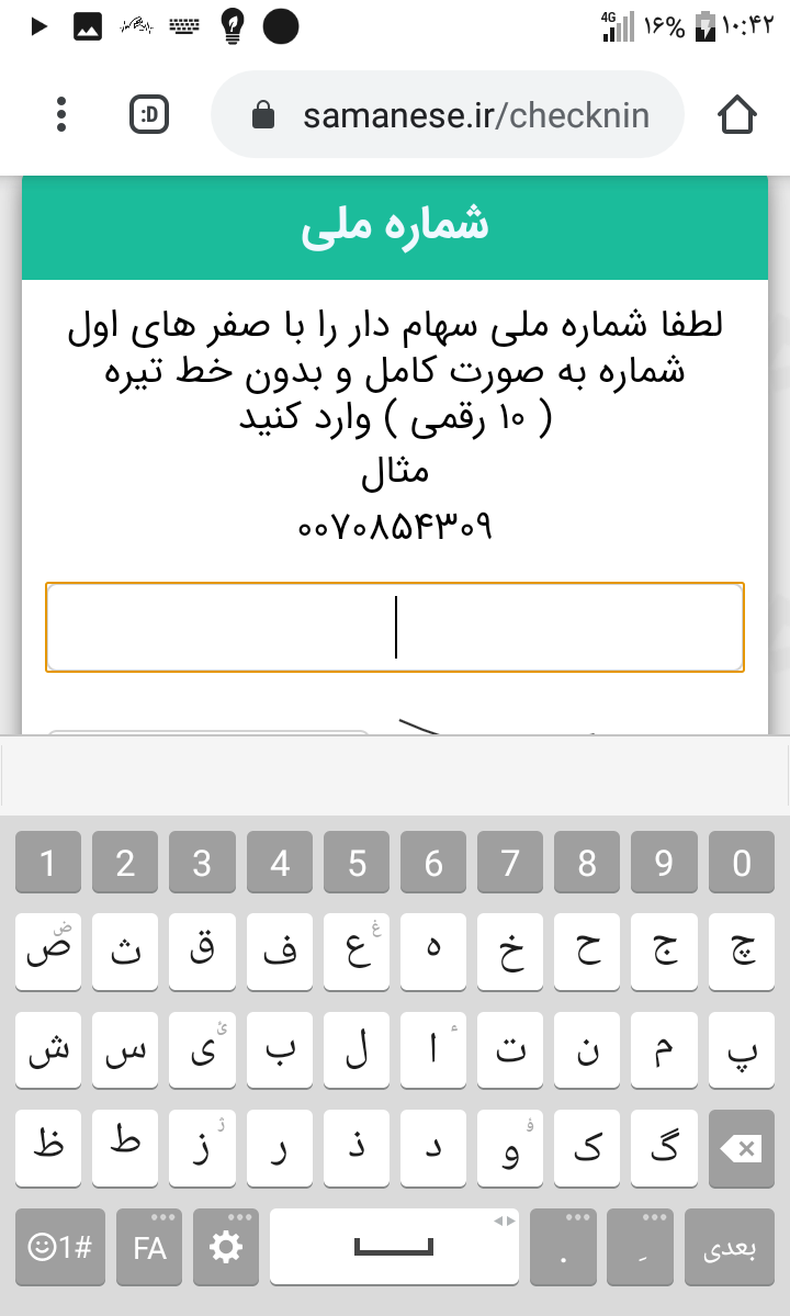 بعد برای کد امنیتی کنارش داخل کادرهست حروف انگلیسی و عددانگلیسیه دقیقاعین خودش بزن اگ حرف بزرگه بزرگ ...