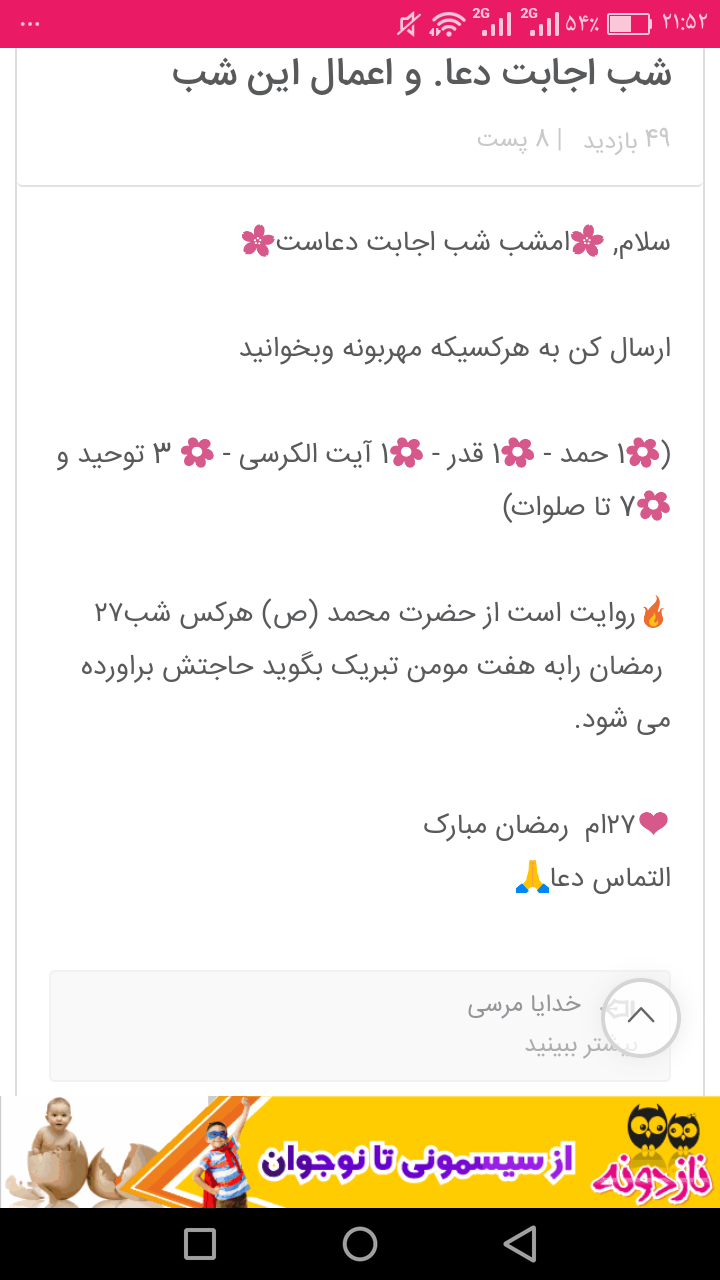 سلام عزیزان شب بیست و هفت رمضان رو به همتون تبریک میگم نماز روزه هاتون قبول درگاه حق باشه