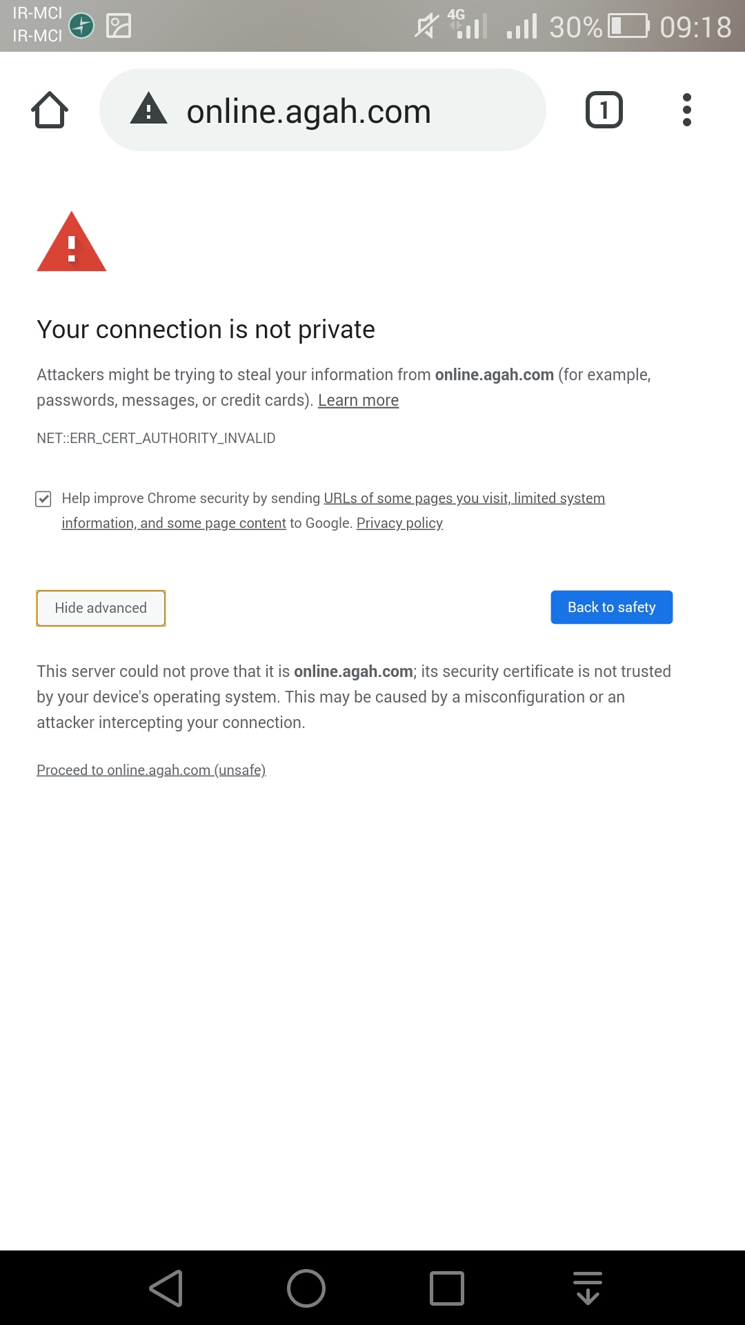 من جای شما بودم اطلاعات کاربریم رو وارد نمی کردم. ممکنه هکر اطلاعاتتون رو بدست بیاره. آدرس این سایت رو من توی کامپیوتر می زنم بدون مشکل میاد، گوشیتون یک ایرادی داره.