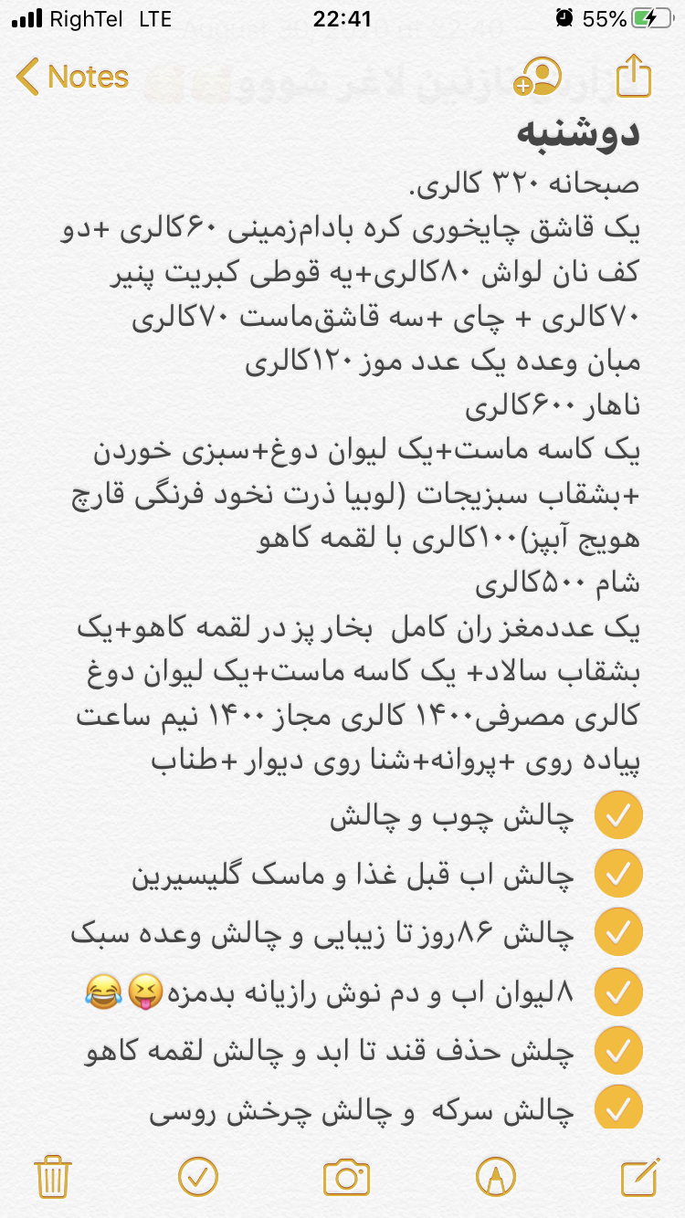 سمیه 😢امروز بهت گزارش نمیدم فک کنم حدود 3000 تایی خوردم بدون ورزش😣