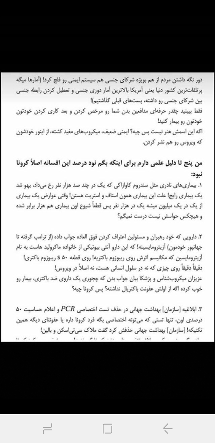 بچه ها یه مطلب تو اینستا خوندم در مورد اینکه کرونا الکیه نمیدونم درسته یا غلط ولی براتون میذارم جالبه بخونید