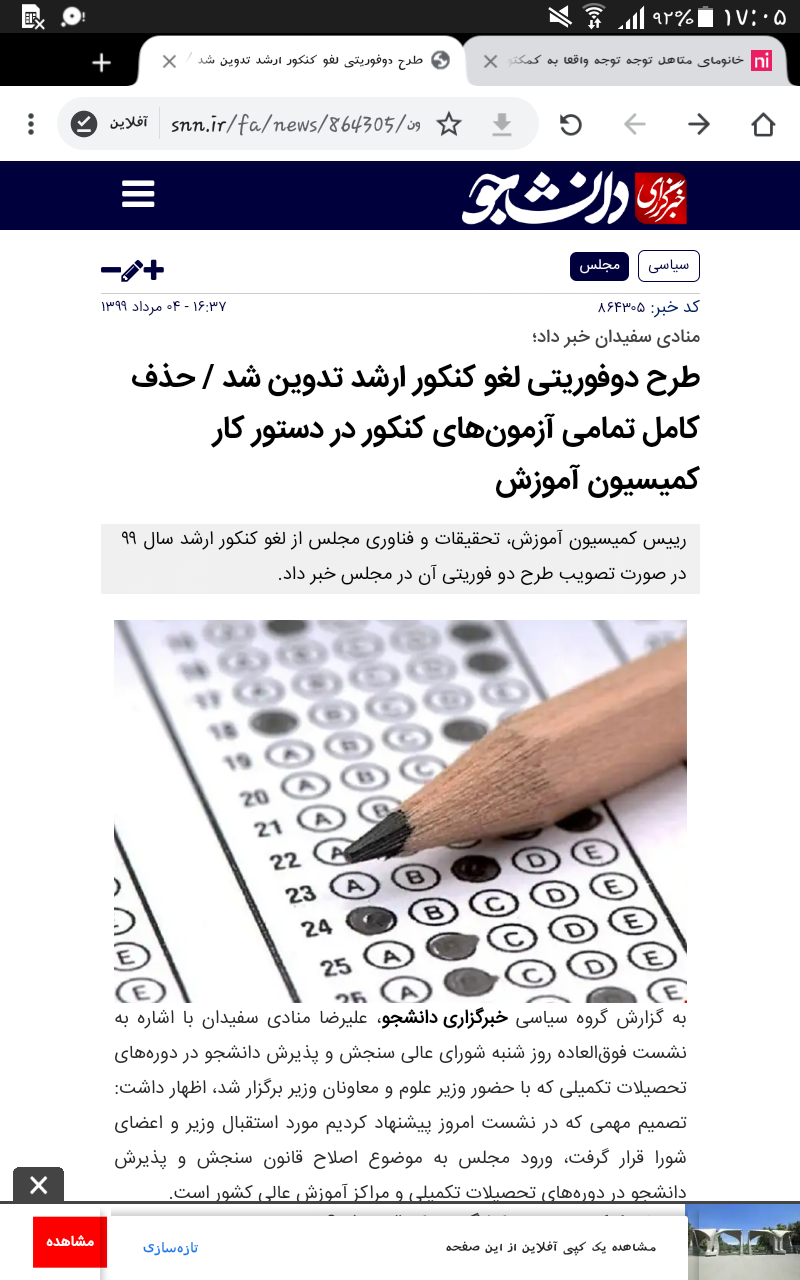 از کجا شنیدی خبر لغو شدنشو؟ یه نفر دیگه هم ود میگفت کنکور کارشناسی لغوه😐