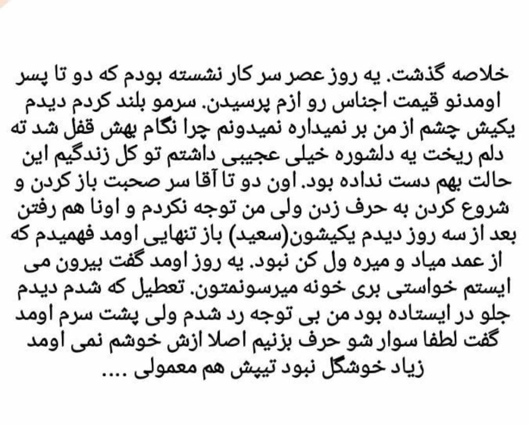 ستیاا مدیر عضویت: 1396/07/11 تعداد پست: 1803 عنوان سرگذشت(داستان) | مشاهده متن کامل بحث + 2377 بازدید | 133 پست هستین بذارم 1399/05/13 | 16:29 6 نفر لایک کرده اند ... گزارش تاپیک نامناسب