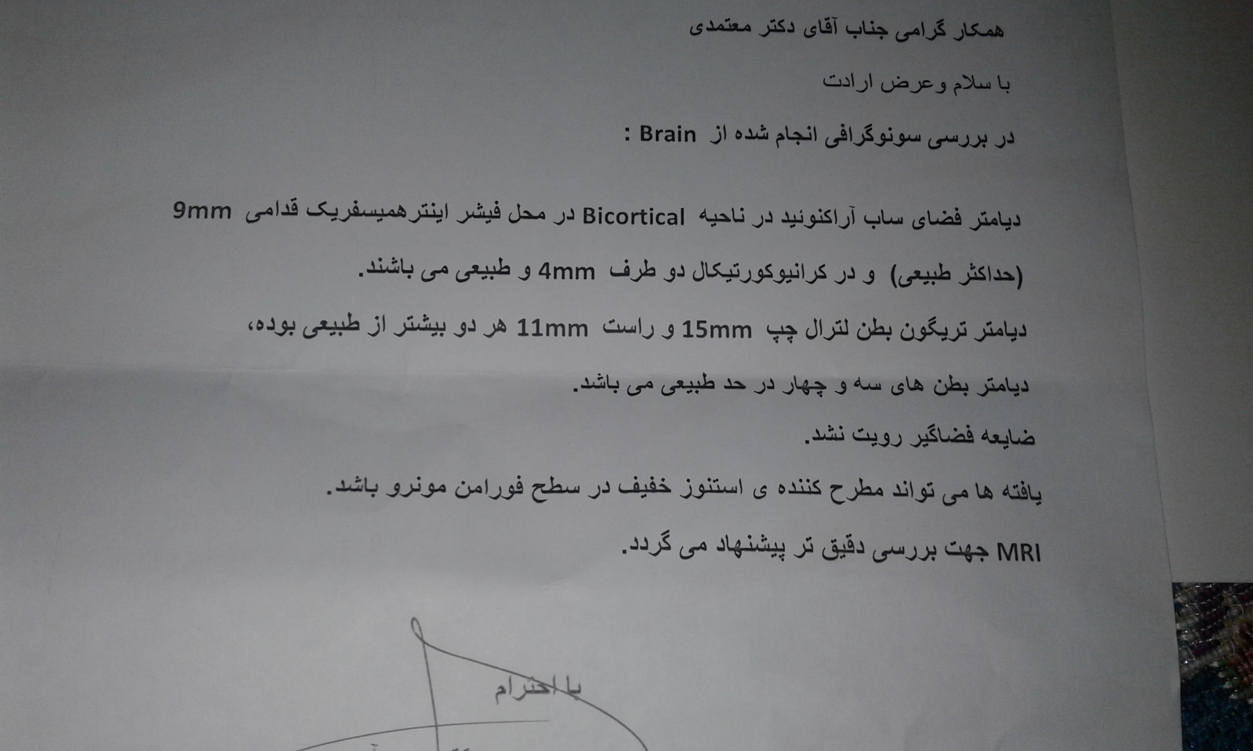 سلام من هنوز ام آر آی نکردم تازه هفته بعد باید ام آر آی بشه. بچه شما چند وقتشه؟؟