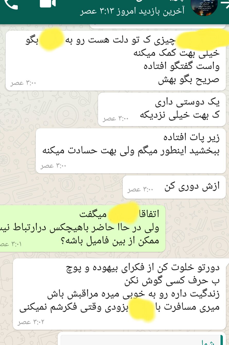 تاریخ انقضات تموم شده واسه همینه از Callتبدیل شدی به Missed Call  خب خب میخوام یه یادی کنیم از کسایی ک کنار ما بودن و الان کنار ما بودن ارزشونه  ببین معرفت خدایی هنوزم یه یادی ازت میکنم . ببین من یه بار بهت گفتم ن هنوزم جوابم همونه واقعا یه ادم تا چه قدر میتونه نامرد باشه بلاک کردنت از همه جا کافی نبود اومدی اینجا هه اسکار سمچ ترین فرد میرسه به تو ببین من باهاش دعوا کنم .قهر کنم و ... هیچ وقت از عشقم بهش کم نمیشه اینو تو سرت فرو کن شاید عقلی پیدا شد متوجه حرفم شدی یکم ادم حسابت کردم دور برندارتت اون کسی هم ک فرستاد اینجا بهش بگو عقده ای جای دیگه این ذات کثیفت نشون بده سرم درد میکنه حوصله بحث ندارم فقط میخوام بخوابم دیگه تمامش کن