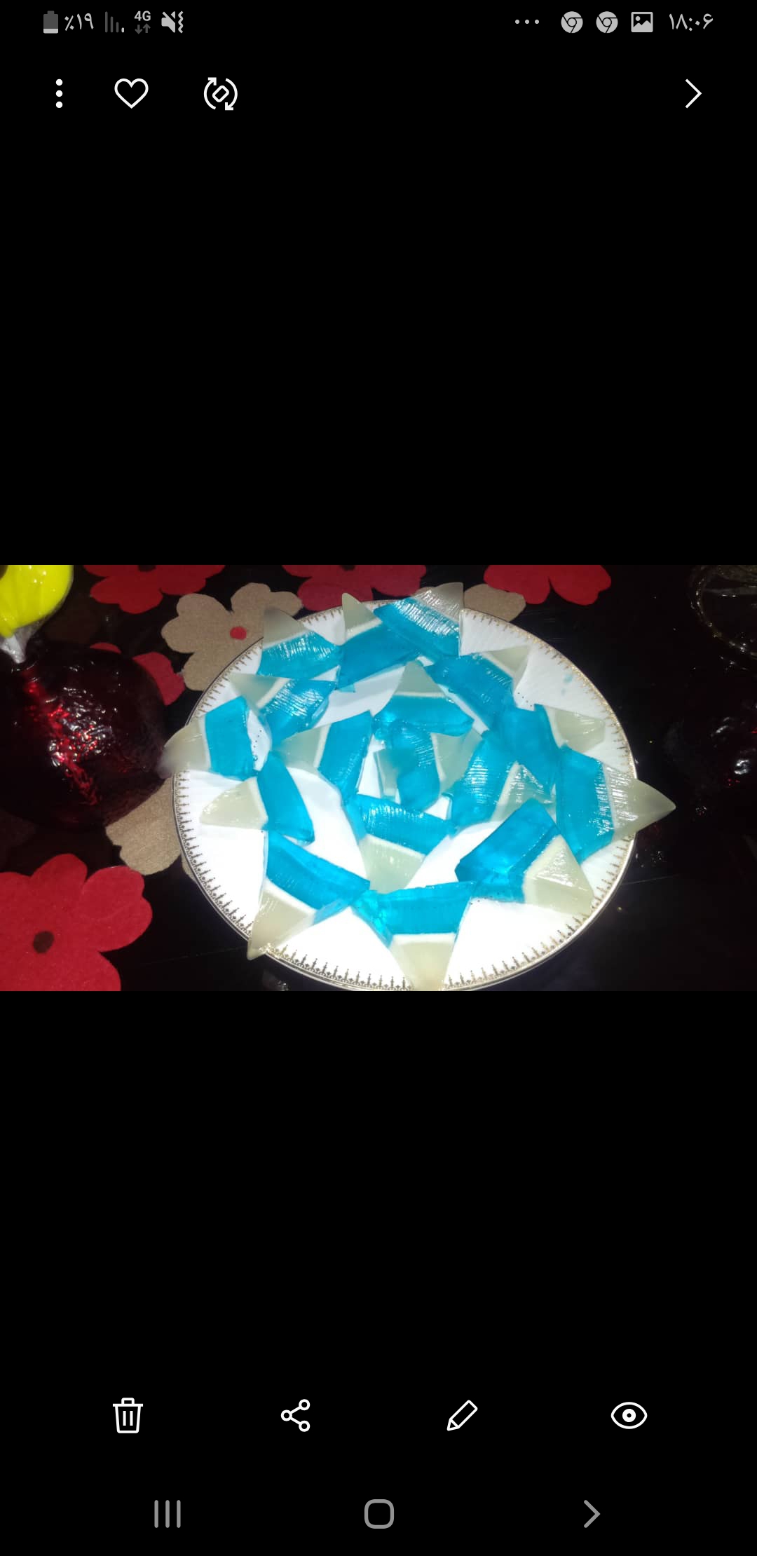 بعد تموم شد مواد با خلال از اطراف غالب به سمت داخل( مثلث ،مثلث) خط میندازم .