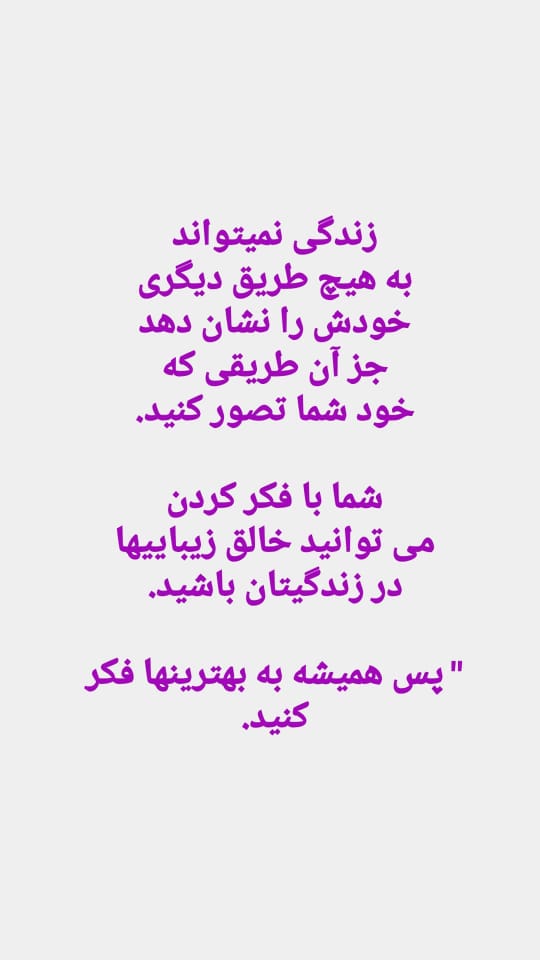 من عاشق زندگیمم و هر چه شکست بخورم قویتر میشم و زمین بخورم پا میشم و هر چیزی که در دنیا است برایم اندرز است از کوه استوار استواری و مقاومت را یاد گرفته ام از خورشید نورانی و مهربانی و گره از کار دیگران گشودن ......