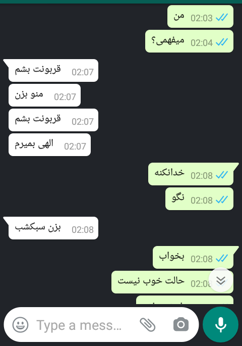 تا قبلش اون داشت قربون صدقم میشد من بهش میگفتم تو غلط کردی فلان چیزو گفتی هی میگفت بمیرم که اذیتت کردم. بعد اومد تلافی دربیاره در صورتیکه من اینجوری جوابشو نداده بودم