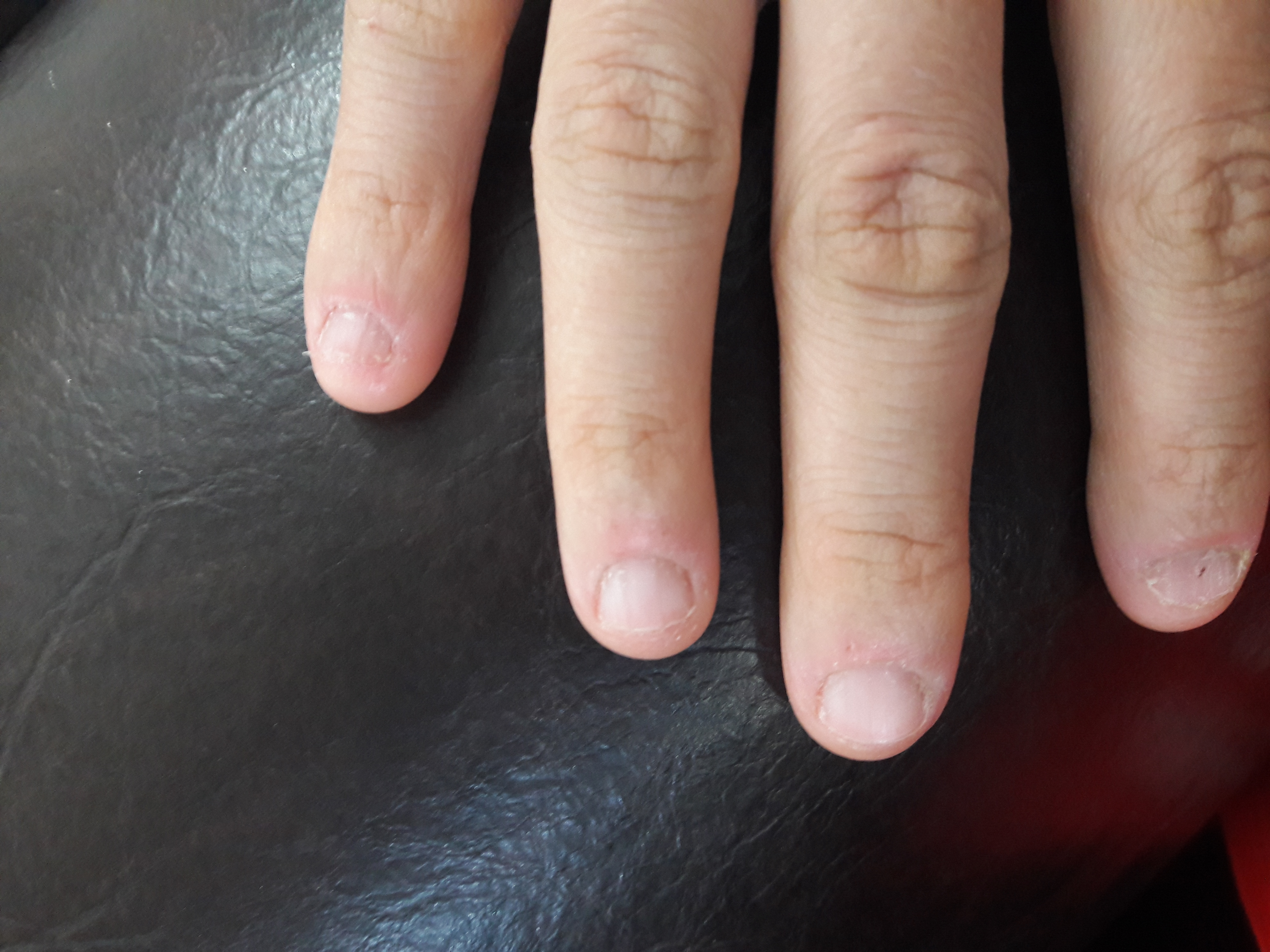 من ناخونای شوهرم کشیده،. ناخونای من یه کمی پهن و تپلی حداقل سفیدم کمتر ضایس😑😐