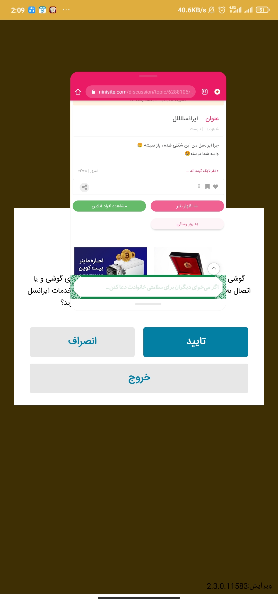 نسا۲۰ مدیر استارتر عضویت: 1399/02/28 تعداد پست: 104 عنوان ایرانسللللل 36 بازدید | 3 پست چرا ایرانسل من این شکلی شده ، باز نمیشه 😥واسه شما درسته😢 1400/01/28 | 02:08 0 نفر لایک کرده اند ... گزارش تاپیک نامناسب