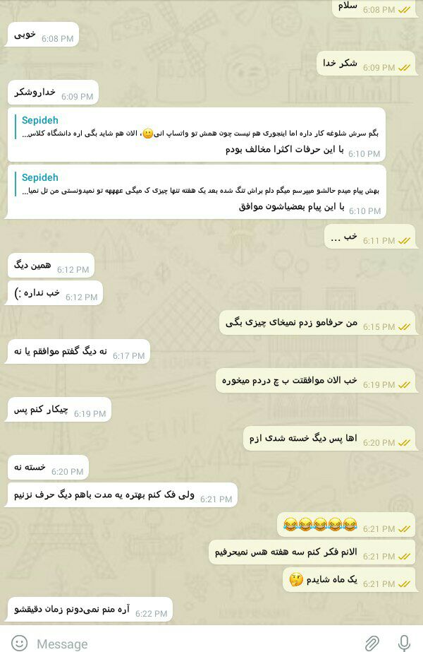 (اینم بگم ک ما دوسال پیش ک من مامانم اینا فهمیده بودن انقدر زجر کشیدم ک کات کردیم و دوباره باهم اوکی شدیم اما من میگفتم ک نسبت به حسم بهش مطمئن نیستم اما این ماله دوساله پیش و من بابت اون روزا معذرت خاستم )