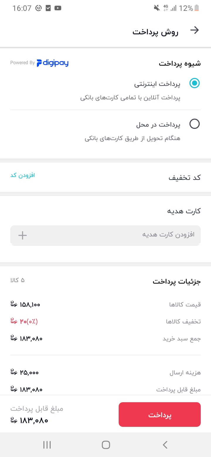 بعد از انتخاب زمان ارسال این صفحه میاد شما پرداخت در محل رو انتخاب کن