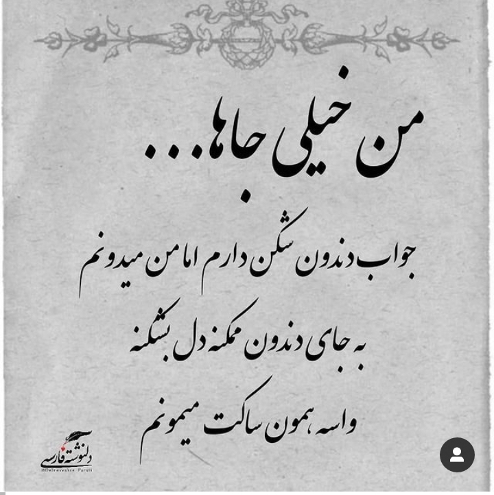 من هی برمیگردم ۹سال پیش، بازم هربار، به یه بهانه ای،همسرم و انتخاب میکنم.با اینکه میدونم کنارش رنج خواهم کشید.... آدمیم دیگه.ترجیح میدیم دردای آشنا رو تحمل کنیم تا دردهای آدمای جدید و رابطه های جدید😒