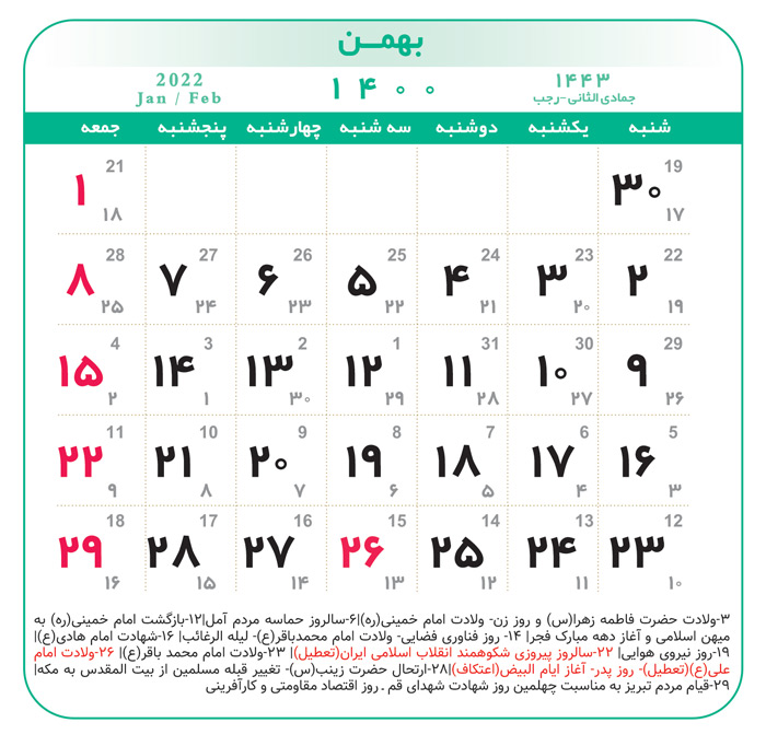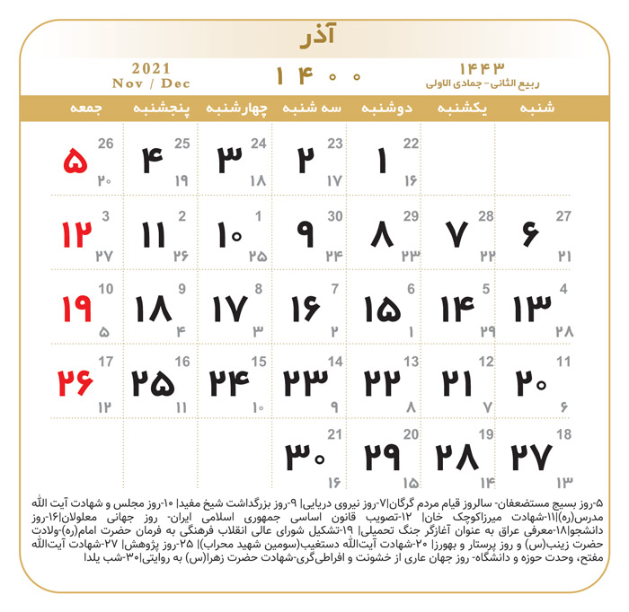 تقویم 1400 در یک نگاه برای آنهایی که در خانه تقویم ندارند، گوشی شان تقویم ندارد