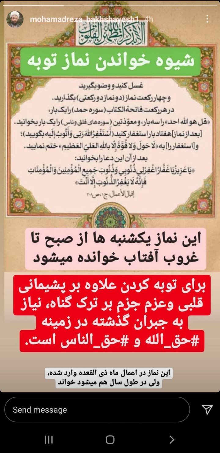 قاصدک۱۱۰۶ مدیر استارتر عضویت: 1398/11/12 تعداد پست: 5891 راهکارهای رفع حق الناساللهم صل علی محمدٍ وال محمدٍ و عجلْ فرجهمْ# 💚https://www.instagram.com/p/COSODT1h8Tg/?igshid=l9vittpkv2cl ❤️اللهم صل علی محمد و آل محمد و عجل فرجهم❤️