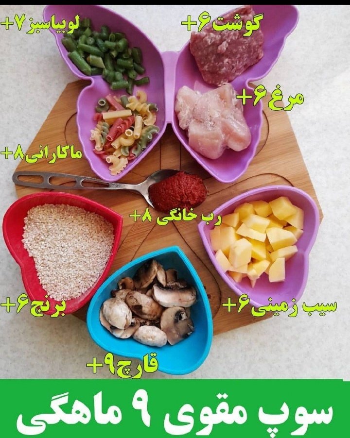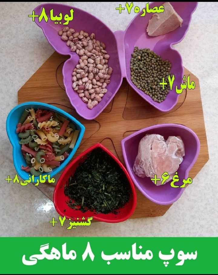 من از ۱۹ ام ماه قبل شروع کردم عزیزم.من حریره بادوم دادم اولش و فرنی. لعاب اصلا ندادم، الانم سوپ میدم ...