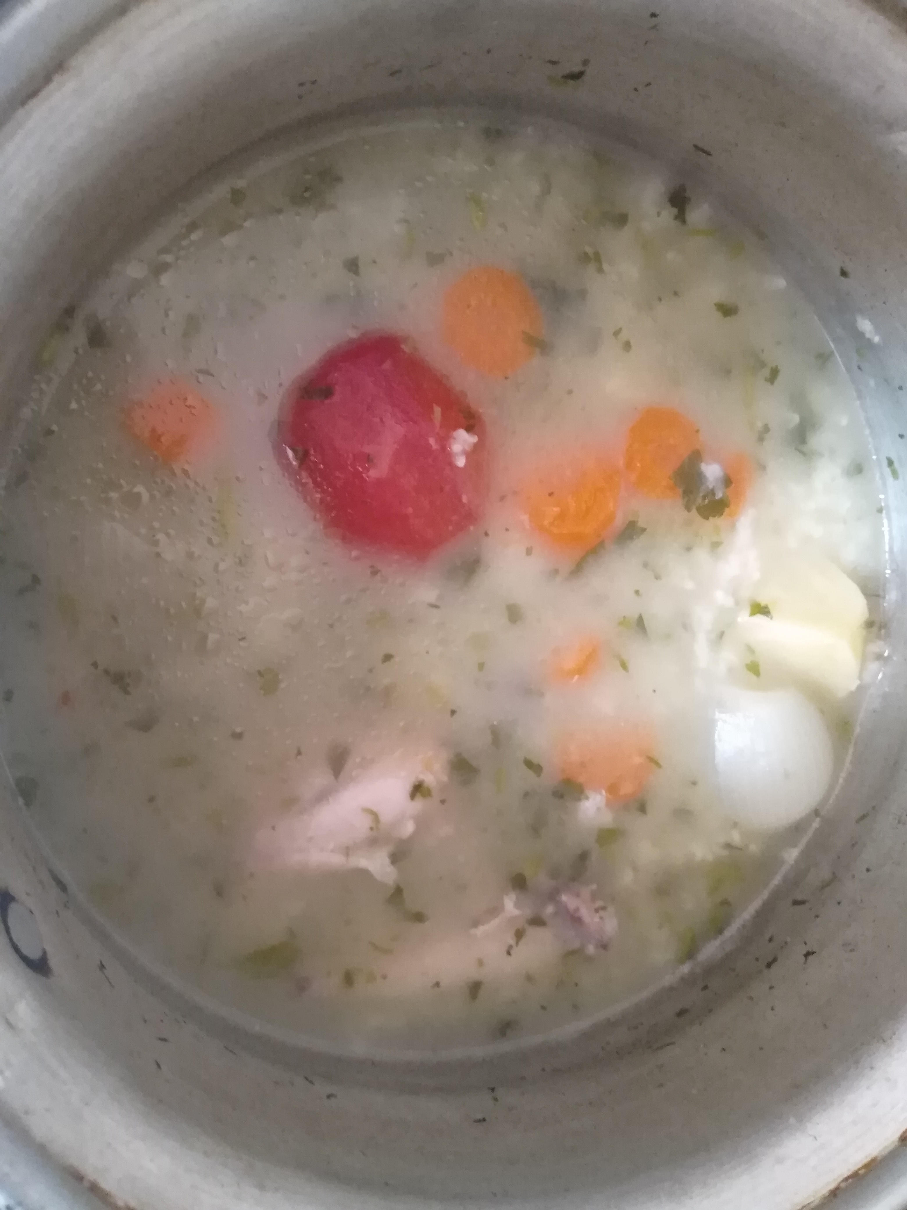 چون فریزرو خالی کردم که داخلشو  بشورم گوشت و مرغامم تموم شده 😂 دوتا بال داشتم اونم انداختم تو سوپ 🤦‍♀️