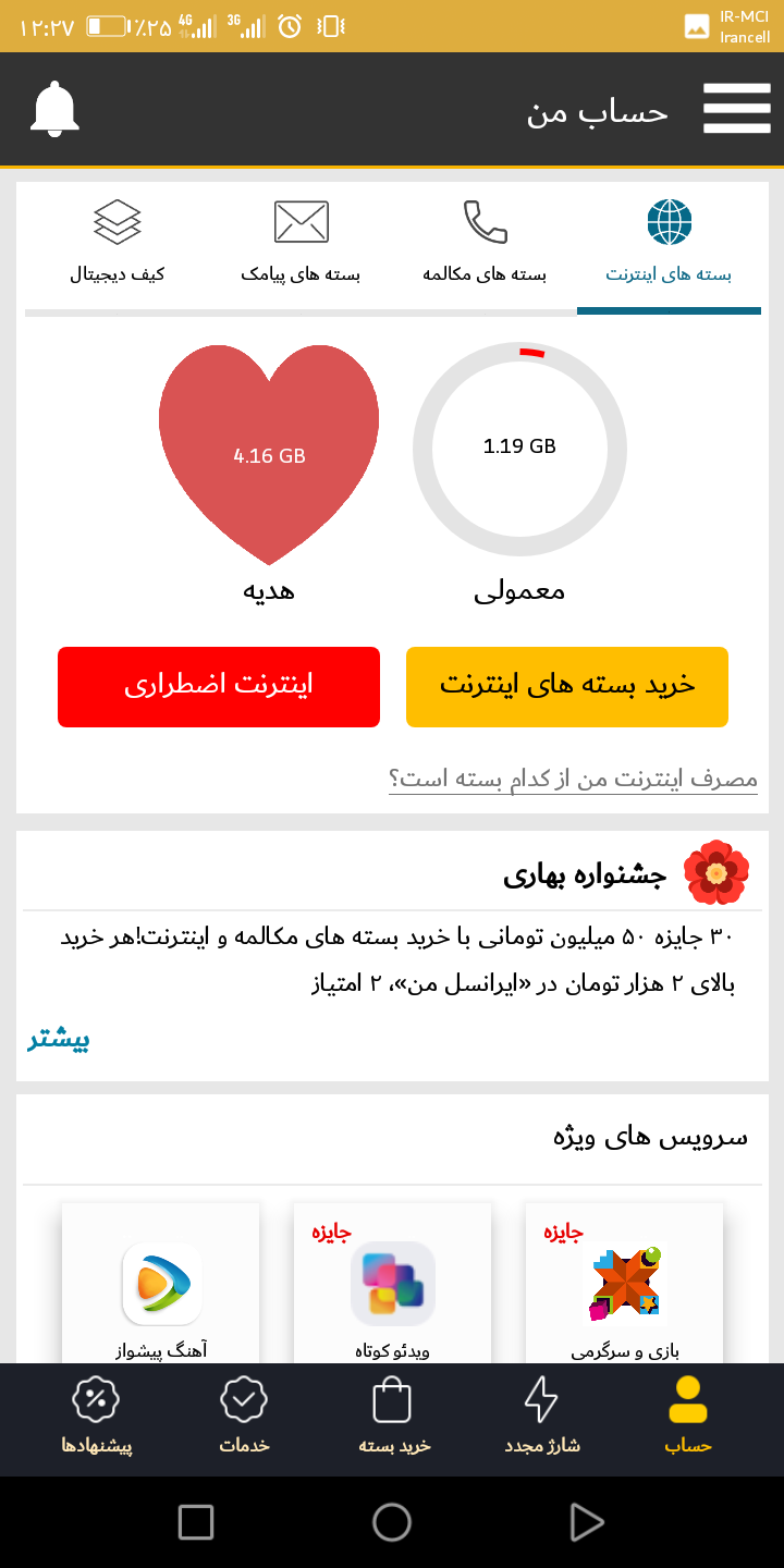 آزادمممم عضویت: 1399/11/09 تعداد پست: 2156 اگه برنامه ی ایرانسل من دارید نگاه کنید که فعال شده یا نه دیگه یک انسان تا زمانی که مادر دارد فقیر نیست.. (آبراهام_لینکلن) قلبم ارومیه❤️💛