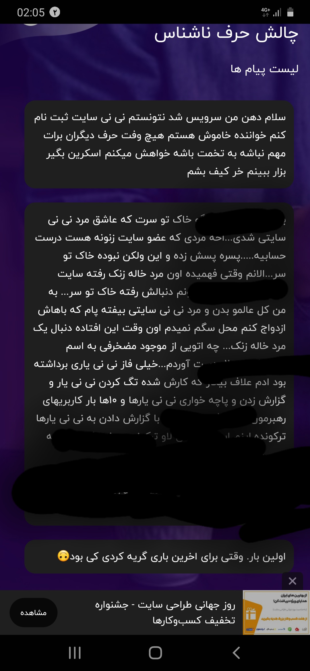 منتظر معجزه خدام.. :) بازمیشه این در ...صبح میشه این شب ... صبر داشته باش ... :)کسایی که توی تاپیکشون یا امضاشون درخواست صلوات دارن من براشون صلوات میفرستم اما حال ندارم اعلام کنمتا اینجا اومدی یه صلوات مهمونم کن به عشقم برسم:)از این کاربری دونفر استفاده میکنه خانم مارپل بازی در نیارین بگین تاپیک ها فرق داره