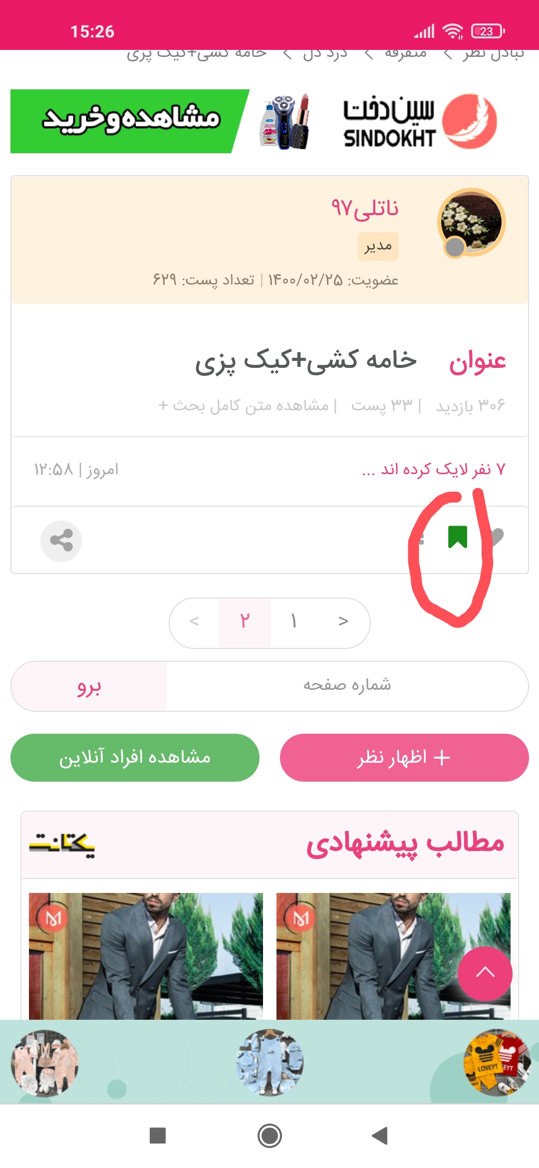 zzzeeeeeyyyyyyyyynaa عضویت: 1399/10/04 تعداد پست: 1384 برو بالای صفحه رو این علامت بزن سبز میشه و تاپیک ذخیره میشه برات خیبی ممنون 🥰🥰