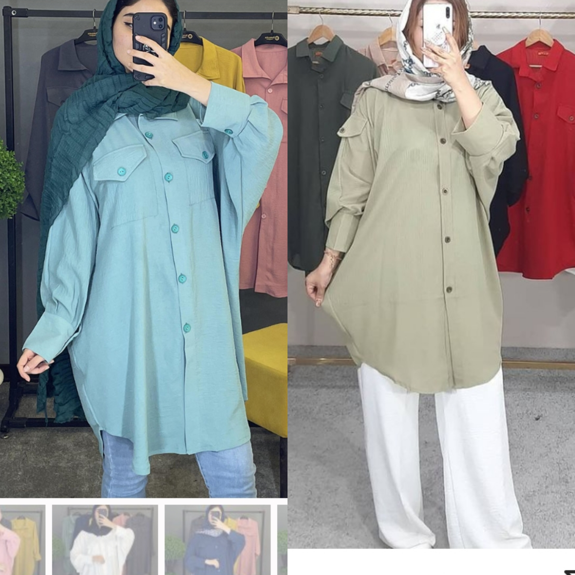نمیدونم کرمیه چه رنگیه اون البته ست کردنش قشنگتره مانتو نمای خودشو داره ولی اون سمتی یه حالت شلخته داره