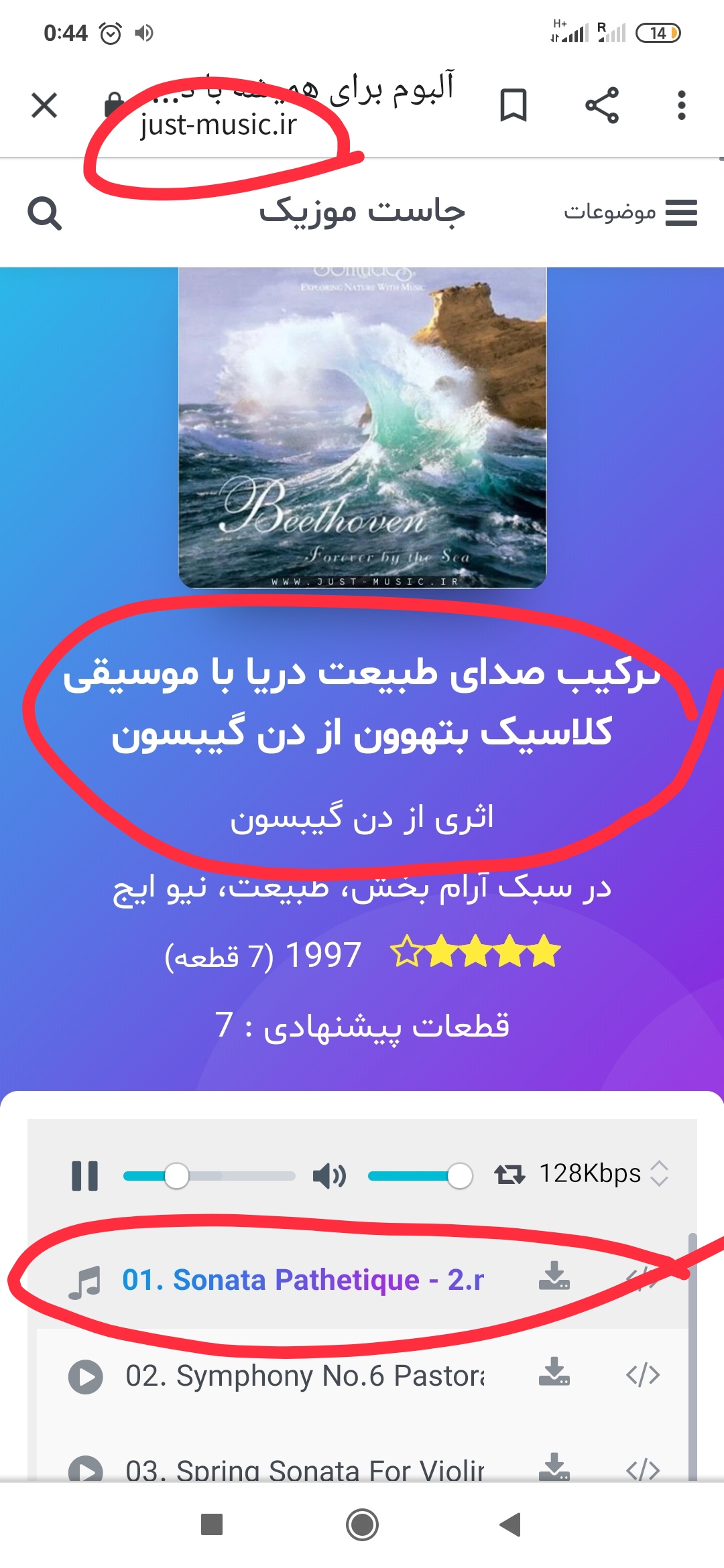 این عکسی که برات میفرستم رو برو آهنگ صدای دریا و موسیقی بتهوون رو از اون سایتی که علامت زدم همون شماره ی یکش رو دانلود کنی هم کافیه و شب خوابیدنی چشماتو ببند بهش گوش بده برای خودت زمان بگیر اینجوری که از گوشیت اسکرین شات بگیر تا زمانش بیفته حداقل نیم ساعت به خودت زمان بده و چشماتو باز نکن
