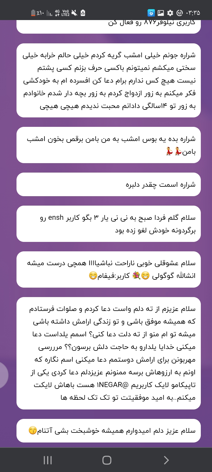 به تو از دور سلام ،به سلیمانِ جهان از طرف مور سلام!😢♡ به تو از دور سلام ، به حسین از طرف وصله یِ ناجور سلام😔! به تو دلبسته شدم!! به شبایِ جمعه کربلا وابسته شدم ... به تو دلبسته شدم !!به خدا من از همه به غیر تو خسته شدم 😢حسین اقام ♡همه میرن تو میمونی برام ...☆ شنیدم پنجره فولادت کربلا میده♡ سلام زندگی ،سلام عشق من؛ الاسلام علیک حجت بن الحسن...♡ ♡الهی و ربی من لی غیرک؟!♡ (ای مبعود من!،مگه من جز شما چه کسی رو دارم!؟♡)در کدامین نخلستان هستی با دلدار خود بـه راز و نیاز نشسته اي؟در کدامین چاه سر فرو برده و راز دل می گشایی؟کاش میدانستیم بیت الاحزانت را کجا برپا کرده اي! یا امام زمان(عج)☆♡