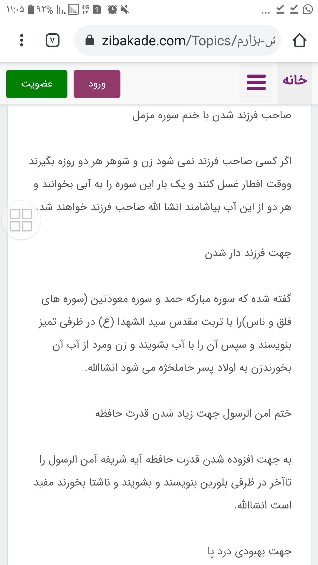 هر کس《سوره تکاثر》را روز دوشنبه یا چهارشنبه ۴۰ بار بخواند.