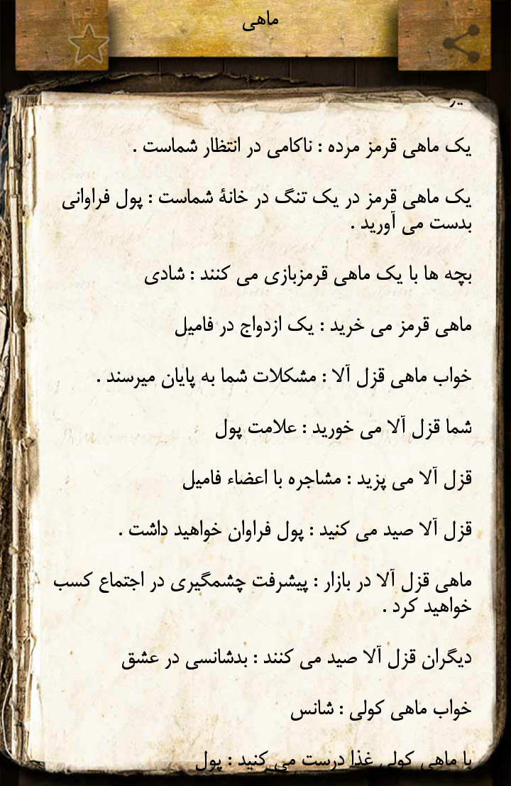 ماهی گیری پول و مال هست به تعداد و بزرگی ماهی ها بستگی داره اگه تعداد زیادو ماهی ها کوچک باشن یعنی پولی که ذره ذره جمع میشه اگه ی ماهی خیلی یزرگ گرفتی یعنی ی مال تپل و بزرگ گیرت میاد