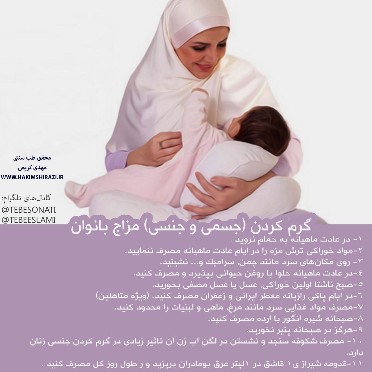 خواهش می کنم. اکثر اینایی که فرستادم نسخه نیست. اینا راهکاره برای اصلاح چیزایی ‌که قبلا رعایت نشده و بدن دچار مشکل شده. صبوری کن و اراده داشته باش برای ایجاد تغییر. ان شاءالله به حق شیرخواره امام حسین ع دامنت سبز بشه
